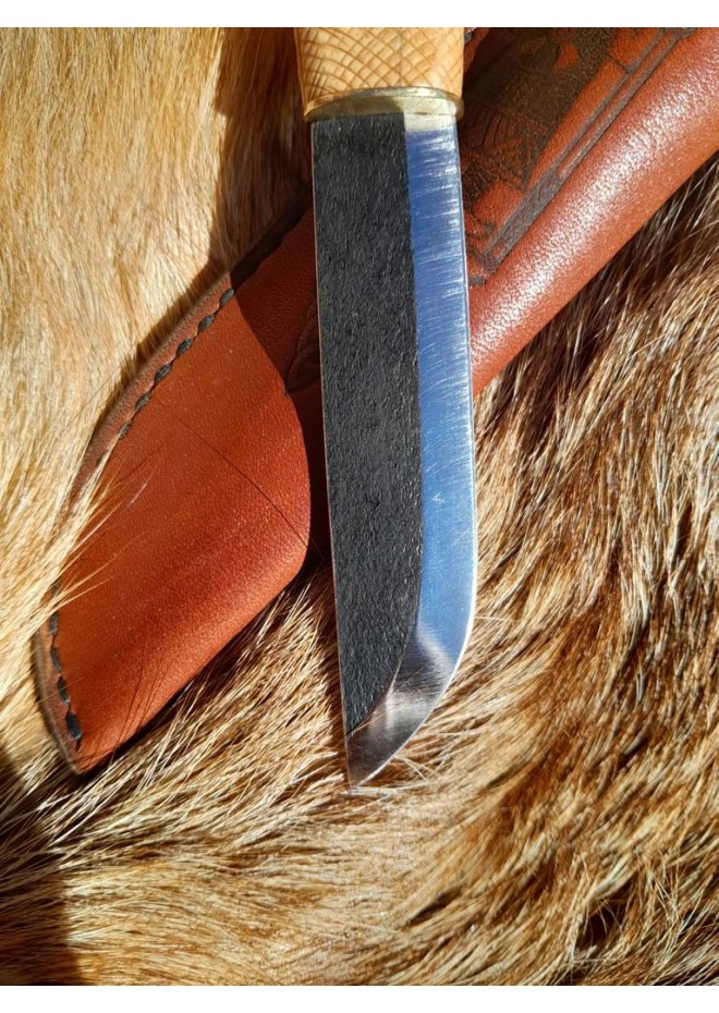 Steel Viking Knife with bone handle. The knife comes with a leather sheath.